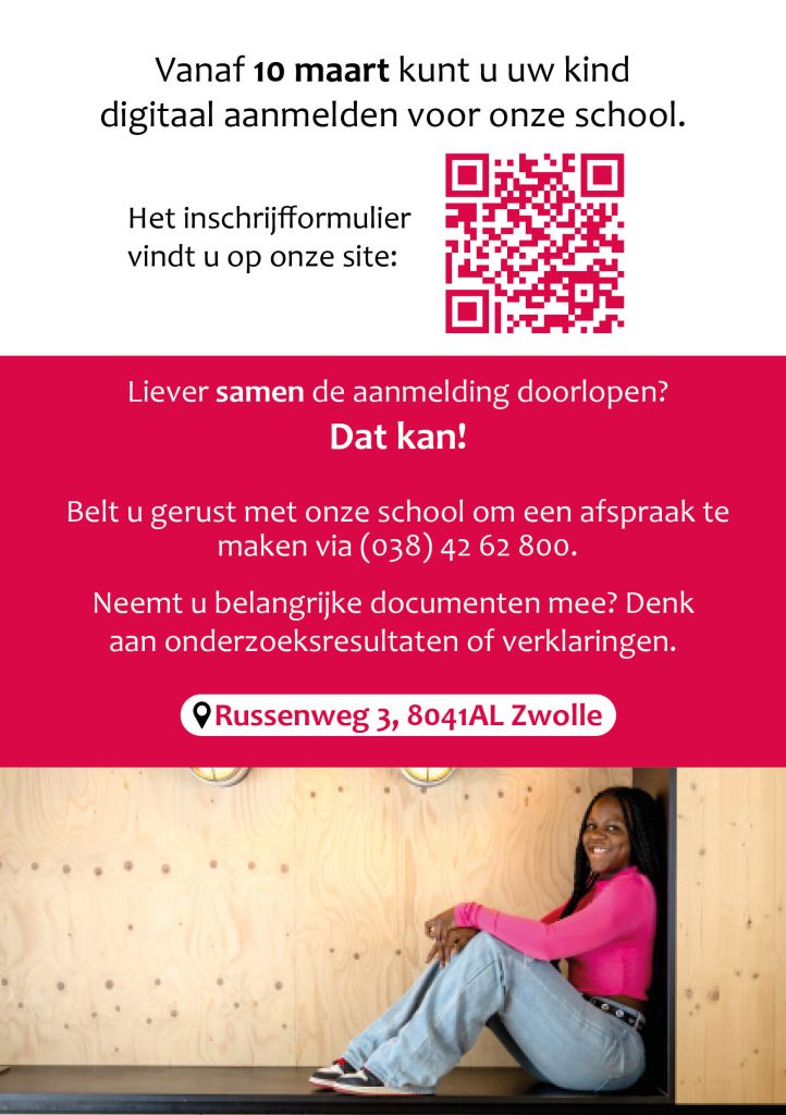 Vanaf schooljaar 2025 gaat het aanmelden digitaal. Vanaf 10 maart kunt u via onderstaande knop uw kind voor onze school aanmelden.